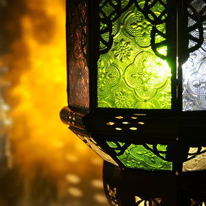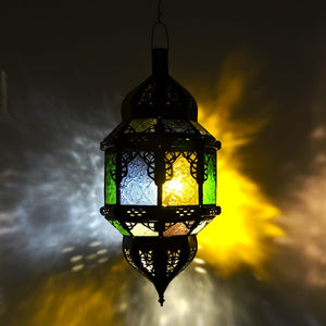 Lámpara andalusí calada arcos. Cristales colores. De un ambiente de color andalusí a su casa.