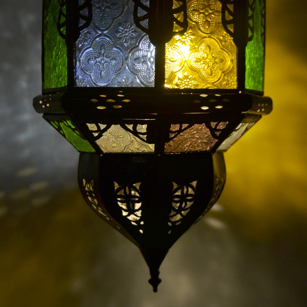Lámpara andalusí calada arcos. Cristales colores. De un ambiente de color andalusí a su casa.
