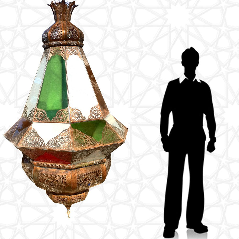 Lámpara bellota gigante multicolor realizada artesanalmente en cobre y cristales translucidos de colores. Un trabajo exquisito de primera calidad. Pieza única, una sola unidad. Ideal para grandes salones. De un toque especial a su hogar. Medidas: 2