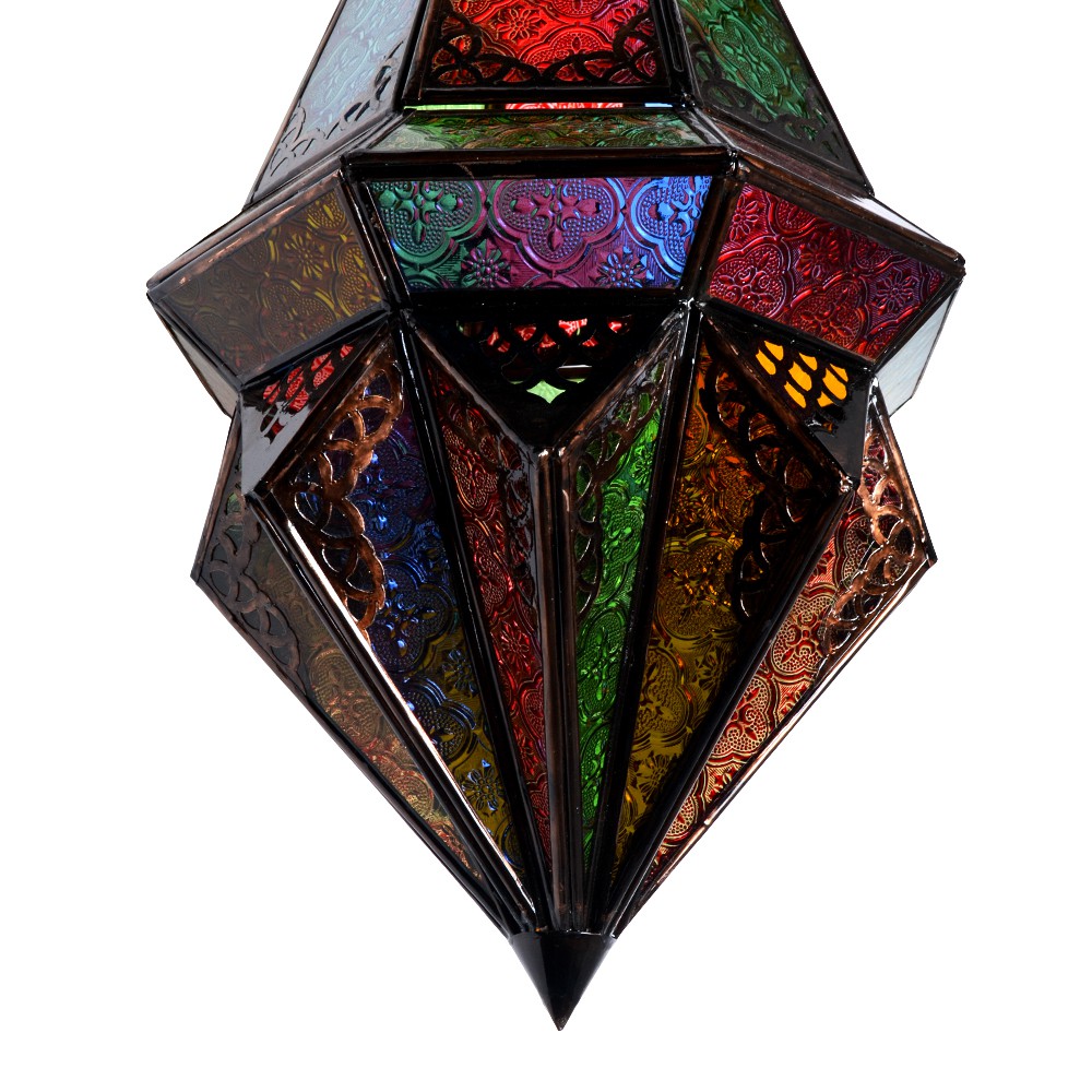 Lámpara andalusí bellota imperial con cristales multicolor. De un ambiente de color andalusí a su casa.