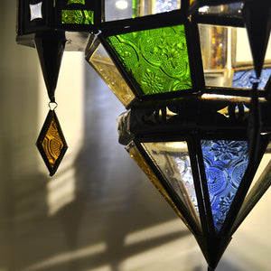 Lámpara de cristal andalusí. Colores. Colgante. Disponible en tres tamaños.