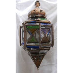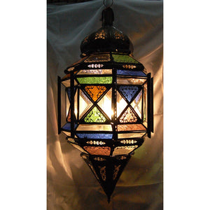 Lámpara de cristal andalusí grande realizada artesanalmente con cristales de colores.Producto de calidad muy bien acabado.