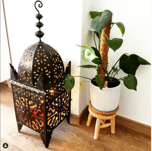 Lámpara artesanal de hierro realizada con mosáicos calados árabes.