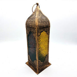 Decore su casa al estilo marroquí con este Farol Árabe con cristales multicolor en relieve, con decorados geométricos andalusíes.