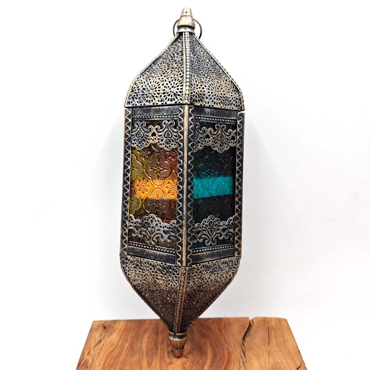 Lámpara Farol Árabe Calado - Dorado Envejecido - 39 cm x 13 cm - Modelo 973