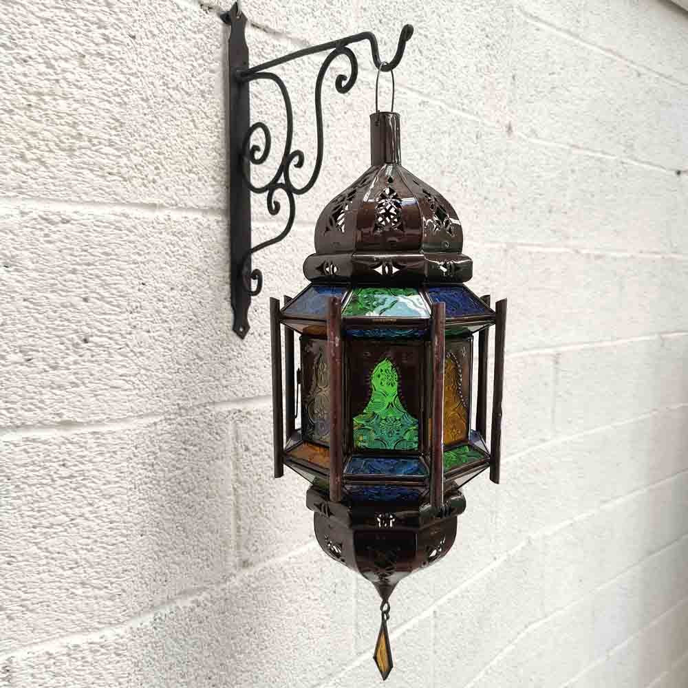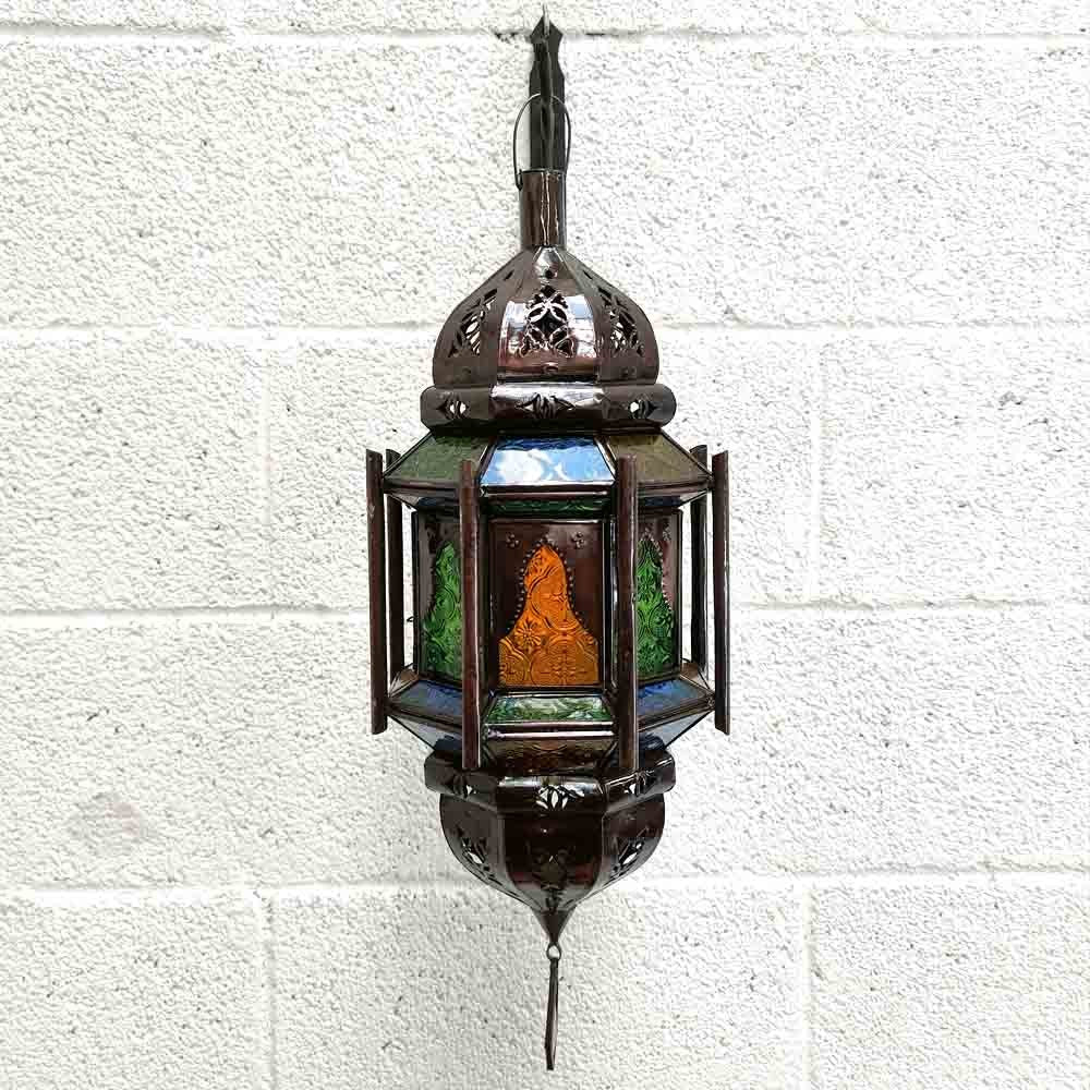 Lampara árabe estilo decoración andalusí para su hogar. Ideal para la decoración morisca en su casa, creara un ambiente relajante. Gracias a los colores de sus cristales sentirá que se encuentra en las mil y una noches.