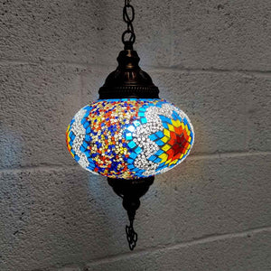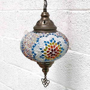 Lampara Interior de techo Turca colgante Otomana con cristales que crean un diseño geométrico y combinado con varios coloren crean un ambiente agradable.
