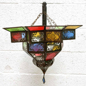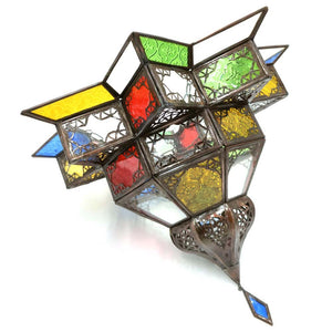Lampara Plafón Árabe - Cristales Multicolor - Calado Árabe