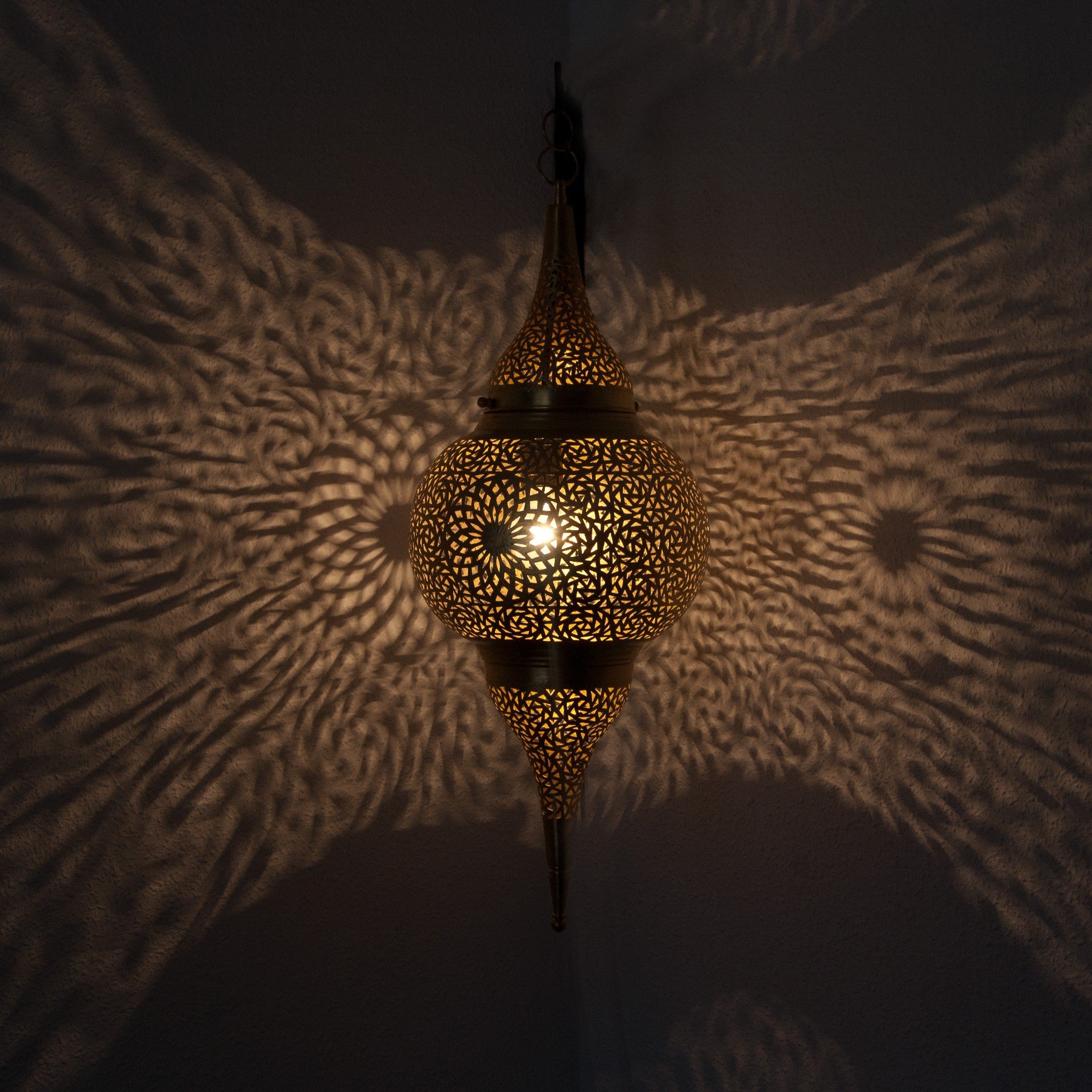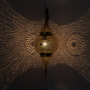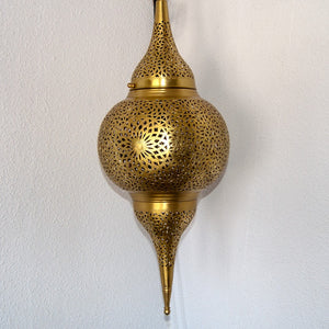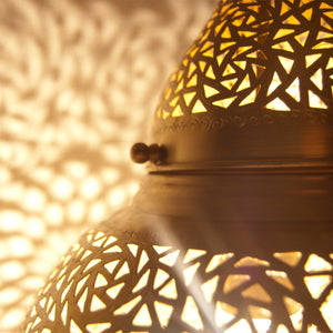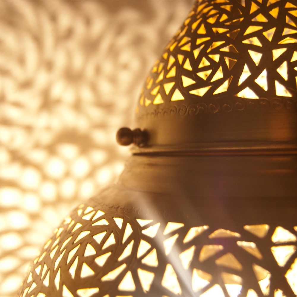 Lámpara andalusí realizada artesanalmente en latón calado.