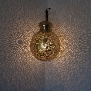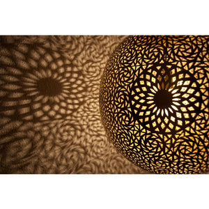 Lámpara andalusí realizada artesanalmente en latón calado.
