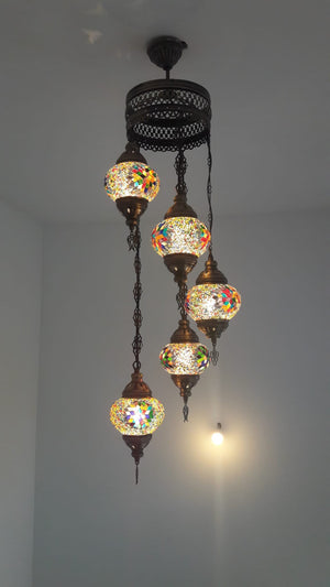 Lampara turca mosaico colgante con 5 bolas, realizada artesanalmente con cristal murano.