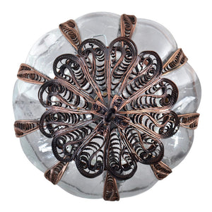Se realiza el cuerpo de fligrana de metal, seguidamente se introduce un "globo de cristal a temperatura muy alta", seguidamente se sopla cuidadosamente hasta que coge la format de la estructura.