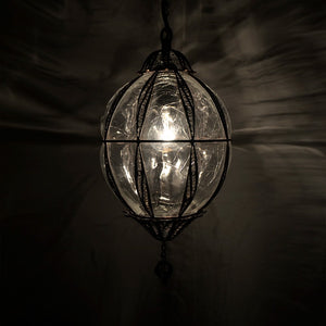 Lámpara de cristal realizada artesanalmente con la técnica de cristal soplado.