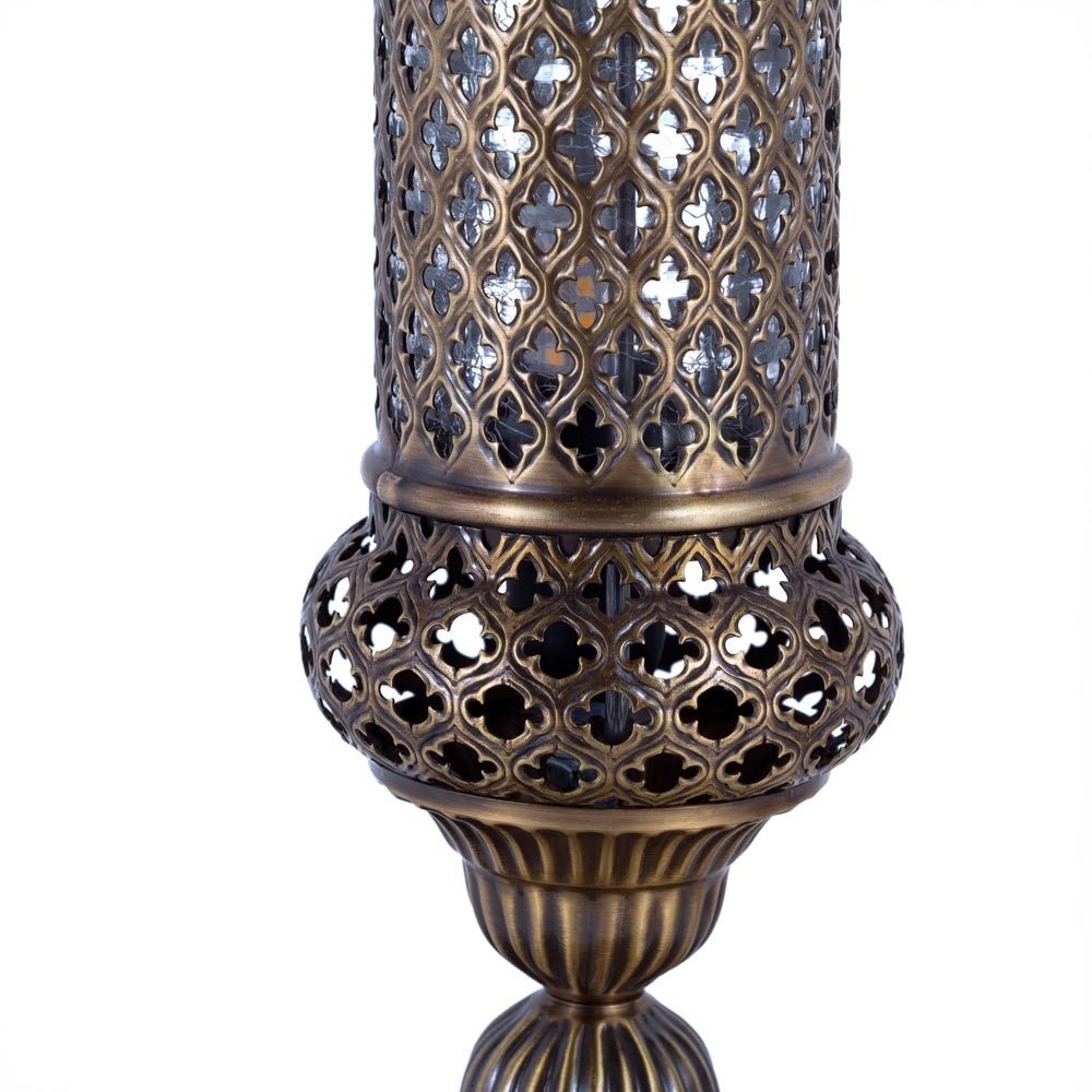Lámpara turca con base, hecha con metal y cristal. Dispone de una base para colocarla en mesa o en el suelo. Gracias a los mosaicos tallados, emanará una luz única que creará un ambiente mágico y relajante allá donde se coloque.