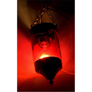 Lámpara de vidrio de decorada con alpaca. Disponible en 4 colores: rojo, azul, verde y transparente. Muy decorativa. Crea un ambiente agradable.