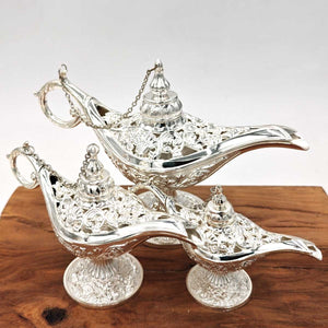 Lámpara Vintage Aladino Plateado - Metal Inoxidable - Modelo Farha 2 - 3 Tamaños
