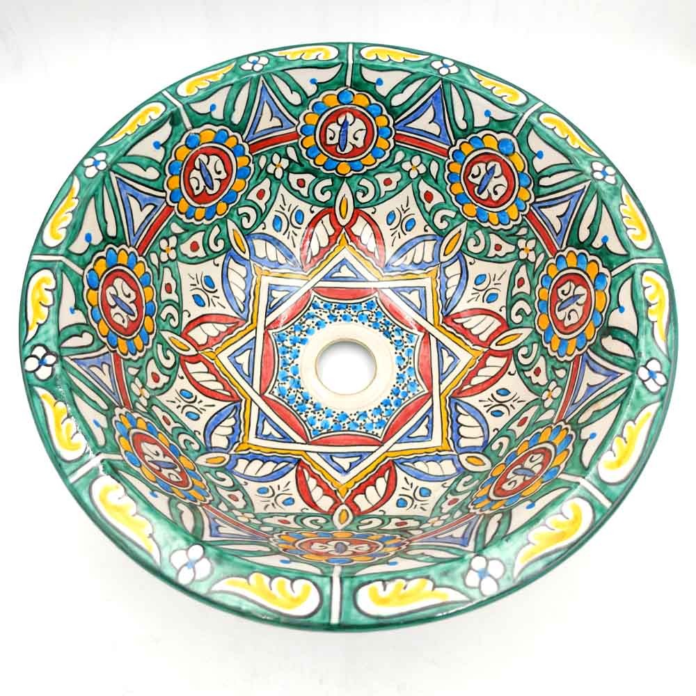 Lavabo Árabe Cerámica 40cm - Artesanía Fez - Pintado a Mano - Modelo Alwanis