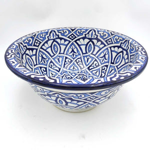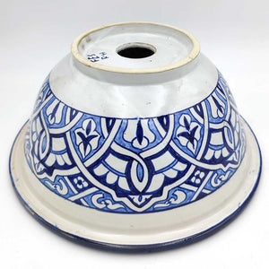 Lavabo Árabe Cerámica Azul cobalto y Blanco disponible en 2 tamaños. Lavabo de cerámica realizado artesanalmente en Marruecos por maestros artesanales. Ideal para recrear decoraciones árabes, marroquíes, andalusíes, moriscas.