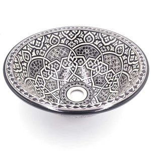 Lavabo Árabe Cerámica Blanco y negro 40cm, Lavabo de cerámica realizado artesanalmente en Marruecos por maestros artesanales.