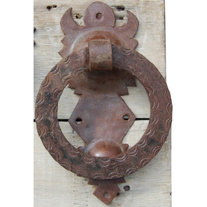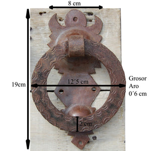 Llamador hecho en forja con grabado. Incluye llamador, embellecedor y picador en una sola pieza. Trabajo 100% artesano.
