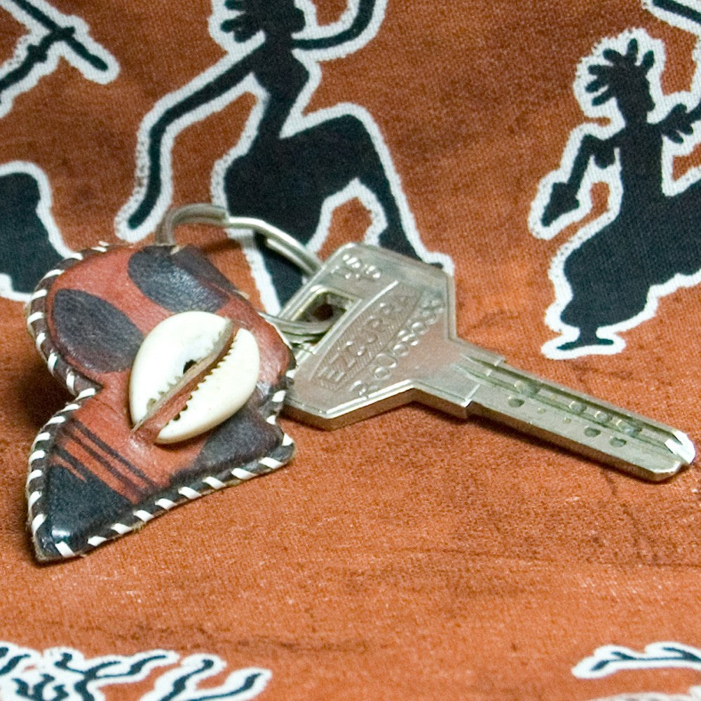 Llavero de cuero "ÁFRICA" con concha decorativa.