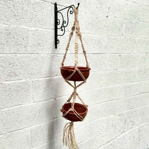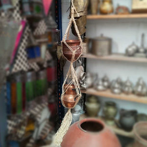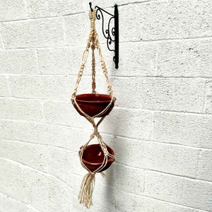 Macetero Doble Colgante de Macramé con Cuerda Vegetal Artesanía Granada 120cm - Modelo Ubaida