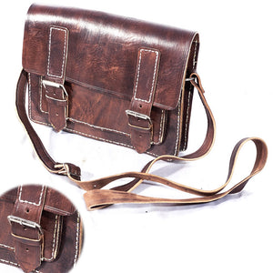 Maletín de cuero realizado artesanalmente.Producto de gran calidad y acabado.Se puede colgar (correa ajustable) o coger con la mano.Dispone de 1 compartimento grande, uno pequeño y un bolsillo de cremallera.Medidas: 30 x 25 cm
