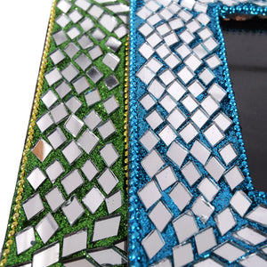 Marco para foto decorado con mini espejitos y brillante.