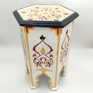 Mesita o mesa árabe de apoyo hexagonal, realizada artesanalmente, pintada a mano.
