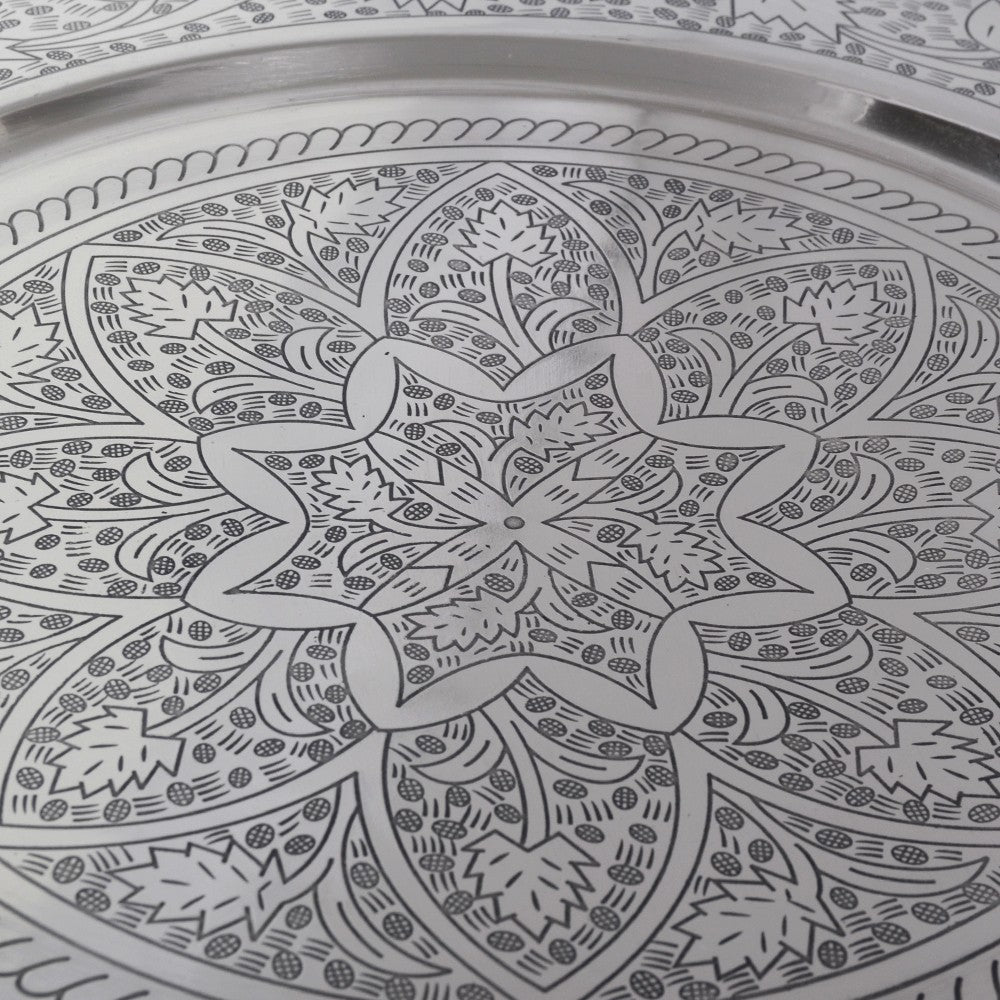 Mesa Arabe Plateada Grabada - Desmontable - 40 cm - Diseño Floral