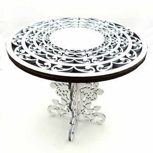 Mesa auxiliar de Madera Cortada por láser. Ideal para usarla para la decoración oriental de su hogar. Realizada artesanalmente en Granada por Jaimaalkauzar.es