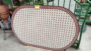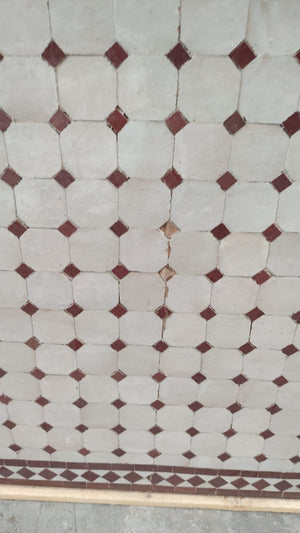 Mesa de mosaico ZELLIGE con TARA de azulejos rojos en el transporte y fisura por la parte trasera. Las estructura está bien. Incluye las patas.
