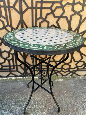 Mesa de Mosáico 40 cm - Redonda VERDE - Azulejos Fez - Modelo AKHDAR MUDAWAR
