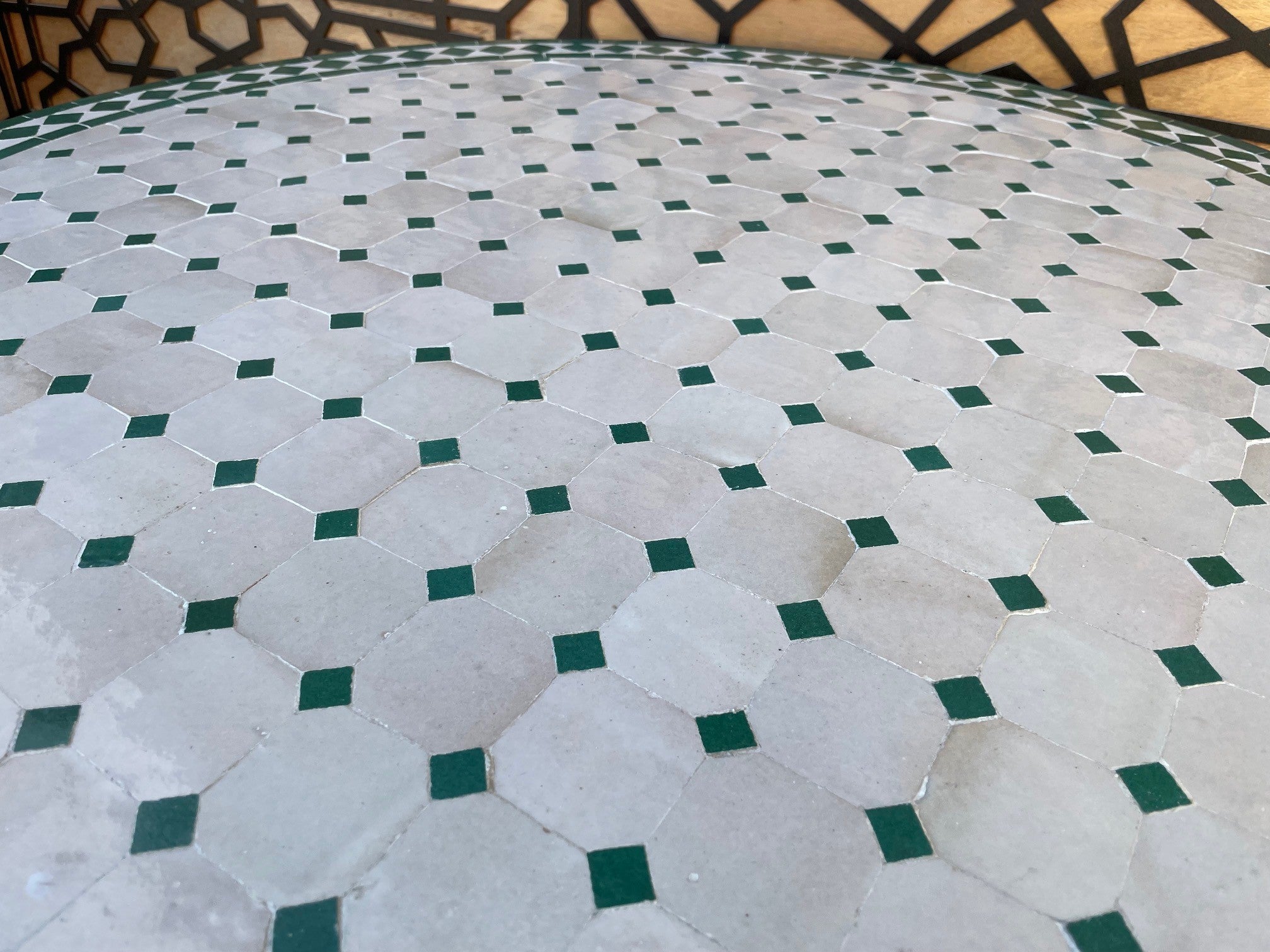 Mesa de Mosáico - Redonda VERDE - Azulejos Fez - Modelo AKHDAR MUDAWAR
