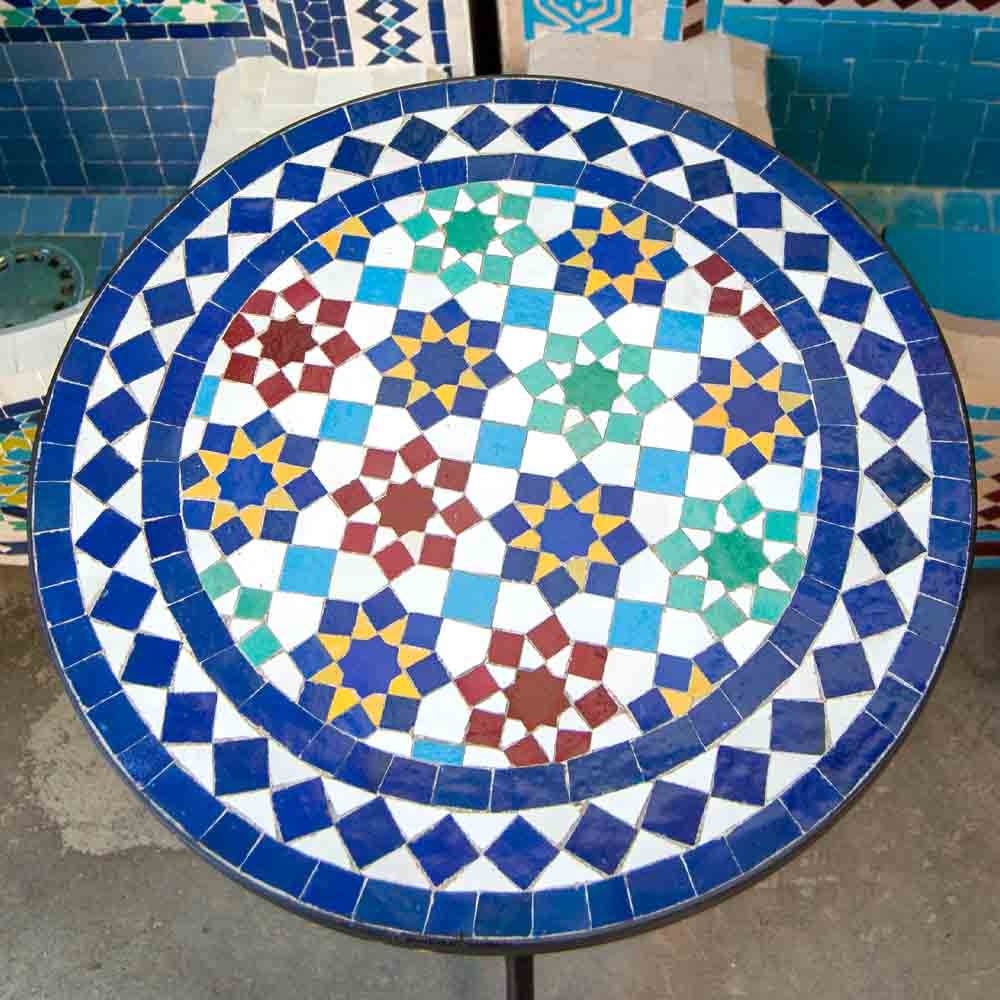 Mesa de Mosaico Zellige Marroquí Fez Andalusí Jardin o Terraza - Modelo Najma Alwania