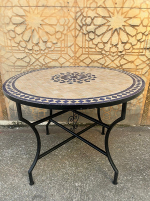 Mesa de mosaico Jardin, terraza, exterior para verano artesanal andalusí elaborada, diseñada y ensamblada en Marruecos por maestros artesanos de la famosa ciudad de FEZ mediante la técnica ancestral del azulejo de zelige, enseñada por los maestros artesanas de la antigua Al-Andalus y mantenida hasta ahora de padres a hijos.