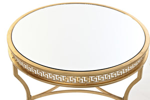 Mesita Auxiliar Oriental de Metal Calado y Cristal Espejo - Dorado