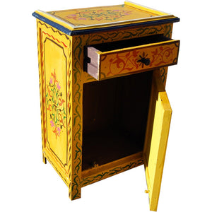 Bonita mesita de noche pintada a mano por artesanos.