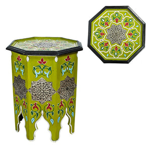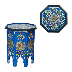 Mesa de noche octogonal andalusí pintada a mano. Realizada en madera y decorada con alpaca.Producto de gran calidad muy bien acabado.Ideal para decoraciones y ambientes árabes.Disponible en varios colores. Realizado artesanalmente.