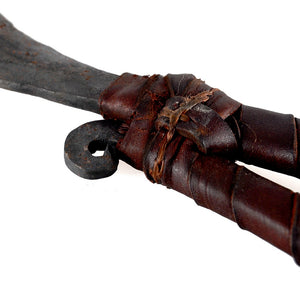 Mini hoz de hierro con empuñadura forrada de cuero,un utensolio muy práctico para los quehaceres en el campo.