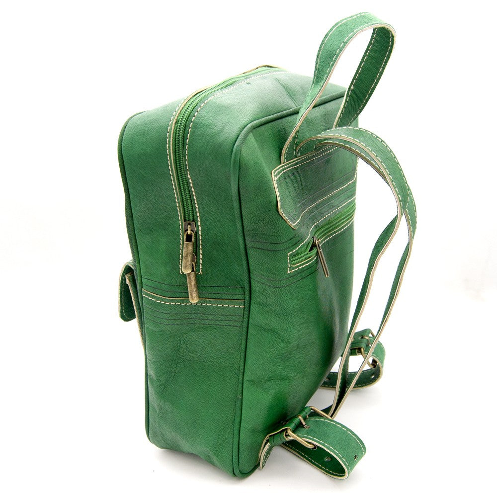 Mochila de cuero de cabra, realizada artesanalmente, disponible en varios colores muy vivos y llamativos.