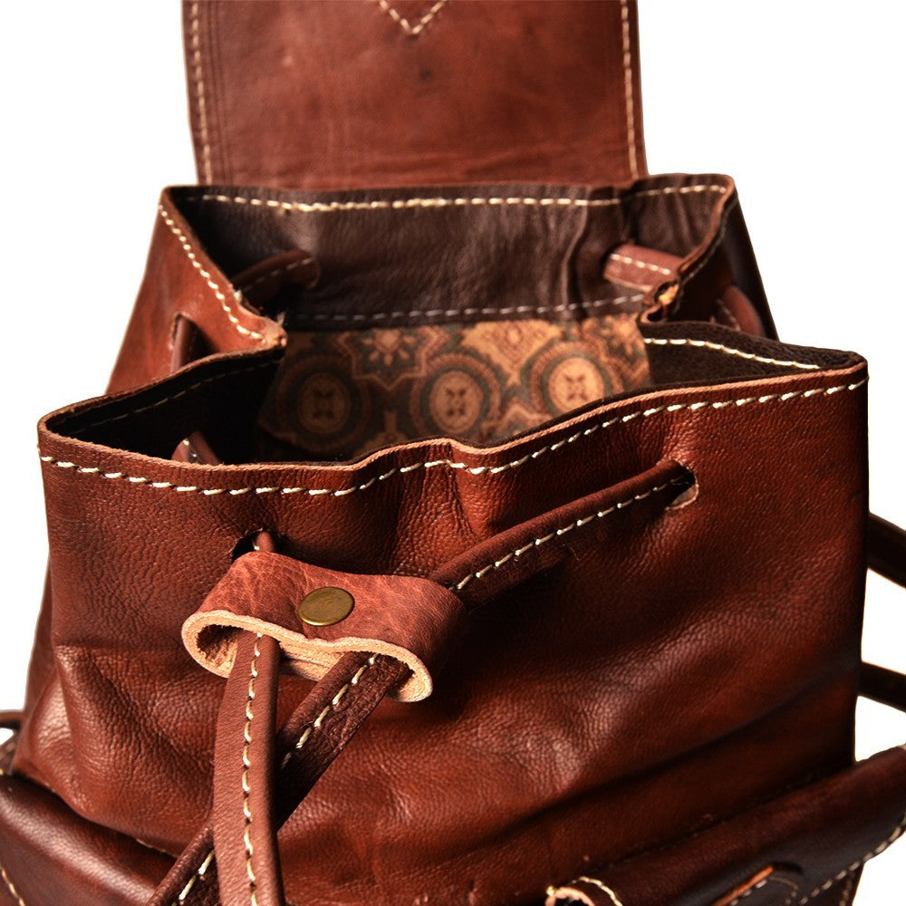 Mochila de cuero realizada artesanalmente con piel de vacuno.