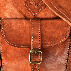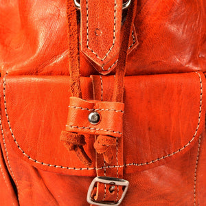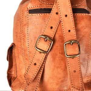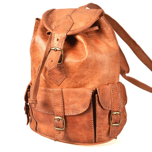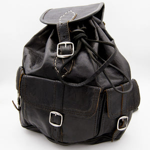 Mochila de cuero artesanal forrada interiormente para mayor comodidad.