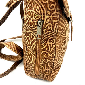 Mochila Cuero Repujada Pequeña - Modelo Camel - 6 Bolsillos