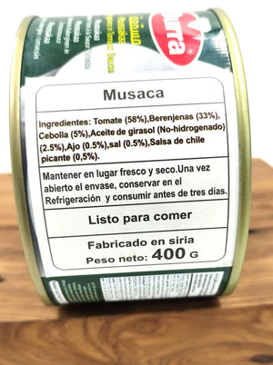 Moussaka en lata, una receta tradicional de Oriente con tomates, berenjenas, cebolla, ajo y salsa de chile picante. Perfecta para disfrutar de un plato auténtico y sabroso de manera rápida y conveniente.