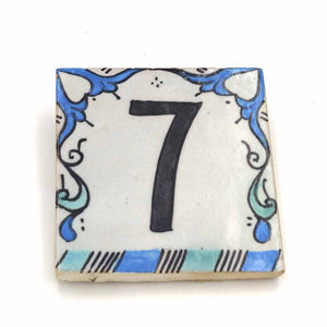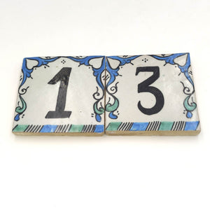 Azulejo Numero Casa u hogar Andalusí, ideal para casas rústicas, modernas, moriscas. Dale un toque a su decoración usando azulejos hechos a mano en Marruecos. Fabricados en Fez, ciudad cocina por sus grandes artesanos.