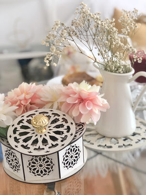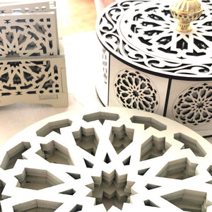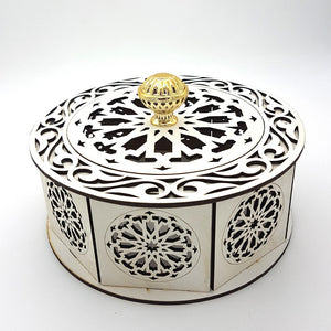 1x Cajita para decoración árabe, Diseño Octogonal, con tapa redonda, o caja estilo bombonera, validad para multiples usos, portaobjetos, porta llaves, para caramelos o dulces. Corte por láser.