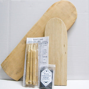 En pack incluye todo lo necesario para escribir árabe (o cualquier otro tipo de escritura) sobre madera.