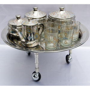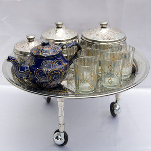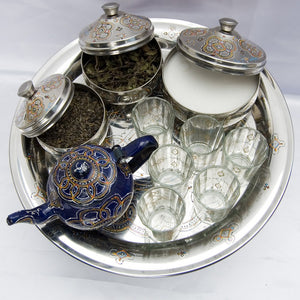 Conjunto de té mauritano completo y original pintado a mano por la asociación de mujeres de Maatamaulana.