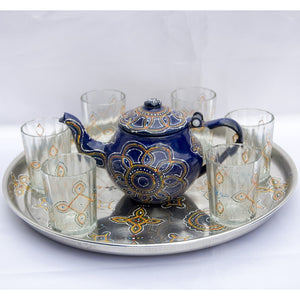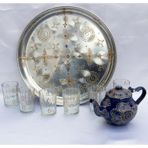 Conjunto de té mauritano pintada a mano por la asociación de mujeres de Maatamaulana. Incluye:
